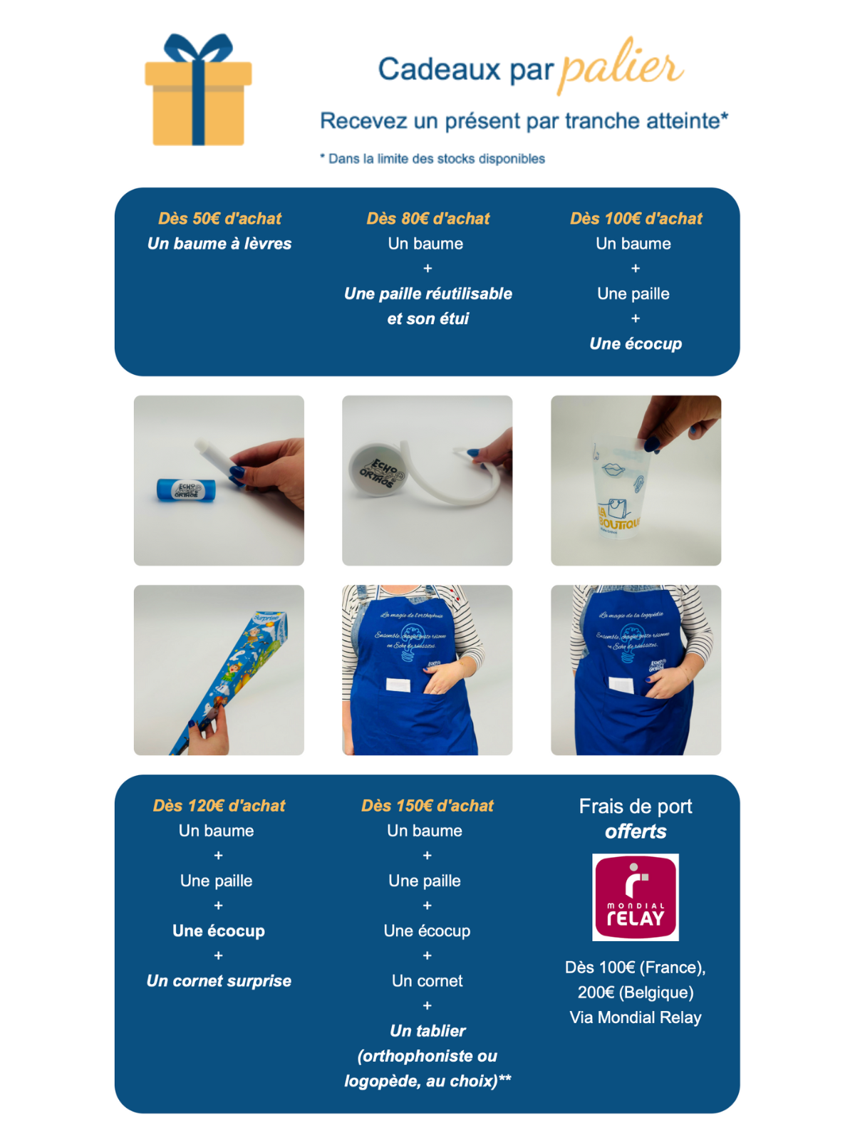 Frais de port offerts via Mondial Relay (en France) dès 100€ d'achats