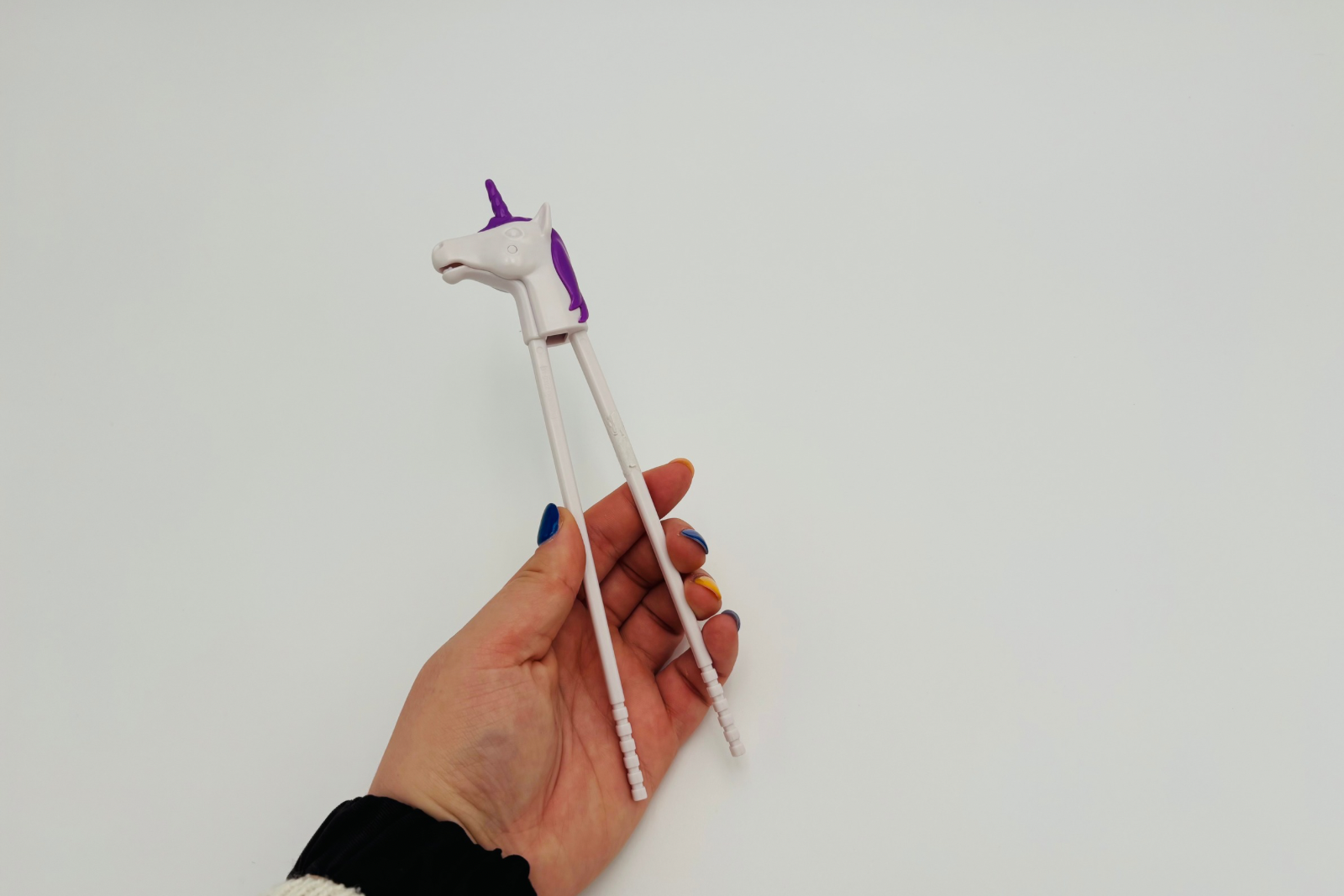 Baguettes qui peuvent rendre plus ludique la prise des repas, notamment pour les patients qui ne supportent pas de toucher la nourriture.