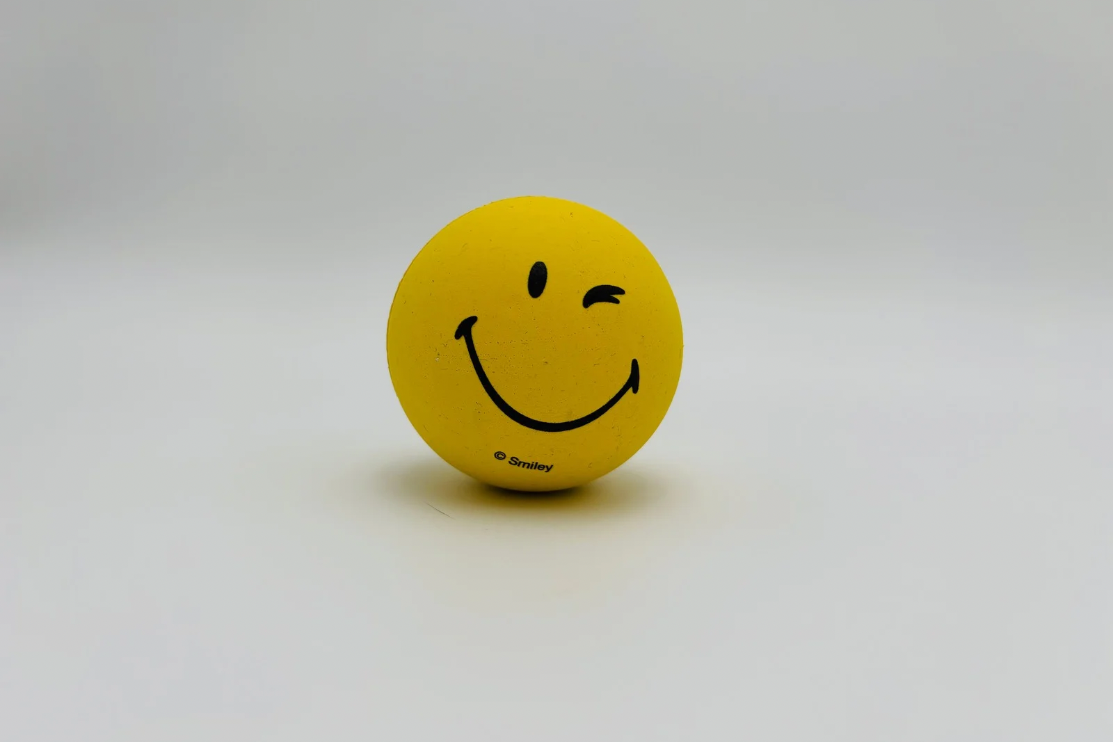 Balle à jongler avec un motif smiley, à utiliser comme renforçateurs, récompenses, ou outils de prise en soins.