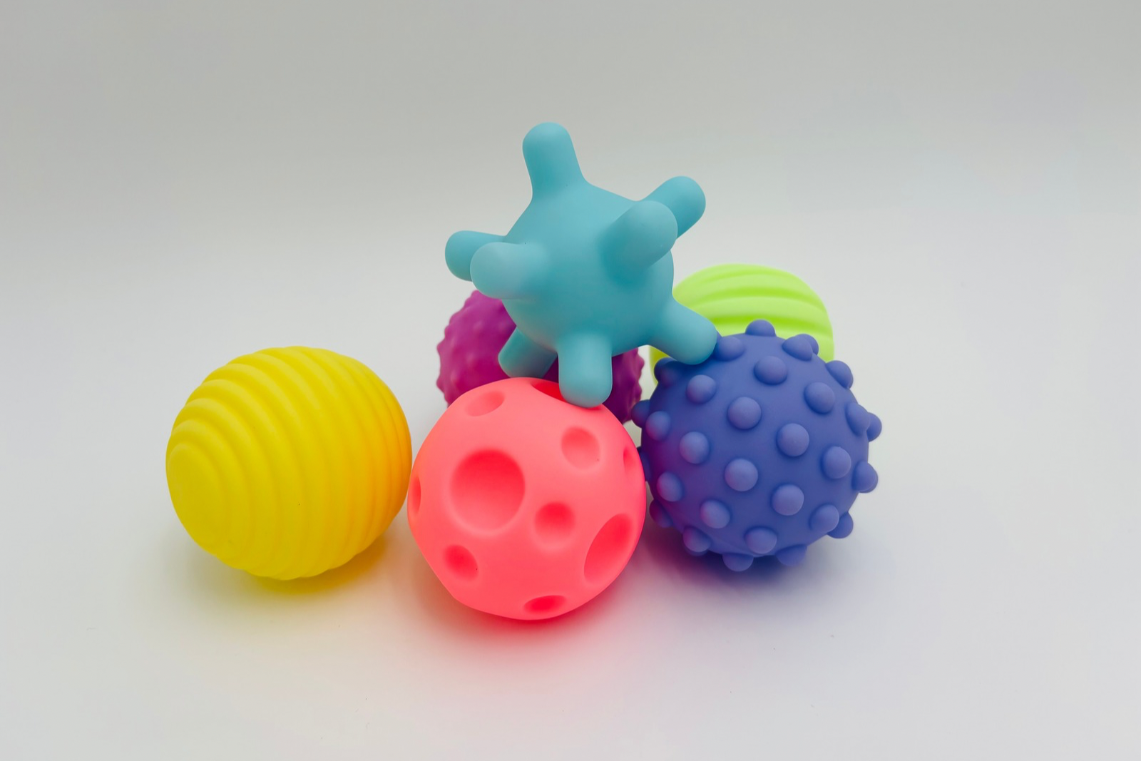 Lot de 6 balles colorées et de textures différentes. Chaque balle possède une texture unique et convient aux petites mains. Elles permettent de développer et de stimuler le toucher, la coordination main-oeil.