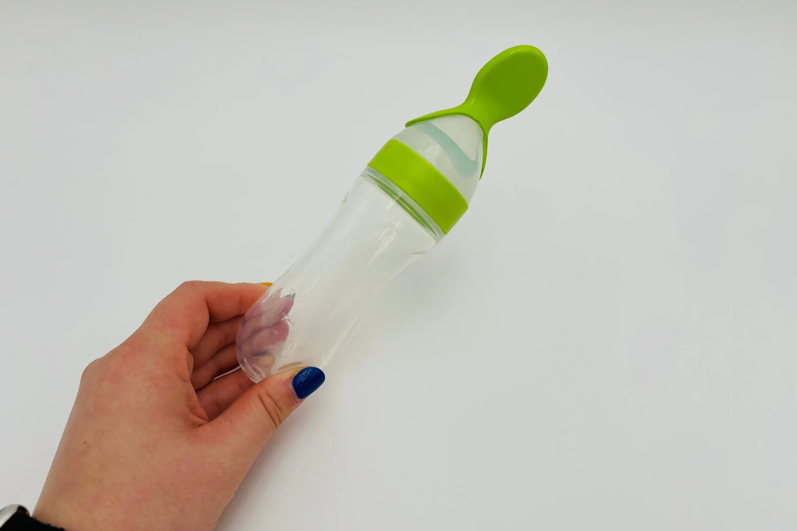 Faites découvrir de nouveaux goûts et de nouvelles textures grâce à ce biberon à presser en silicone doté d'une cuillère en plastique. Le chargeur est conçu pour faciliter l'alimentation et le nettoyage.