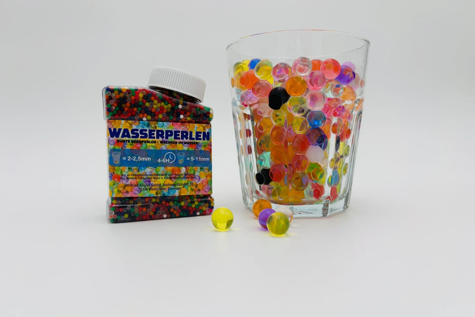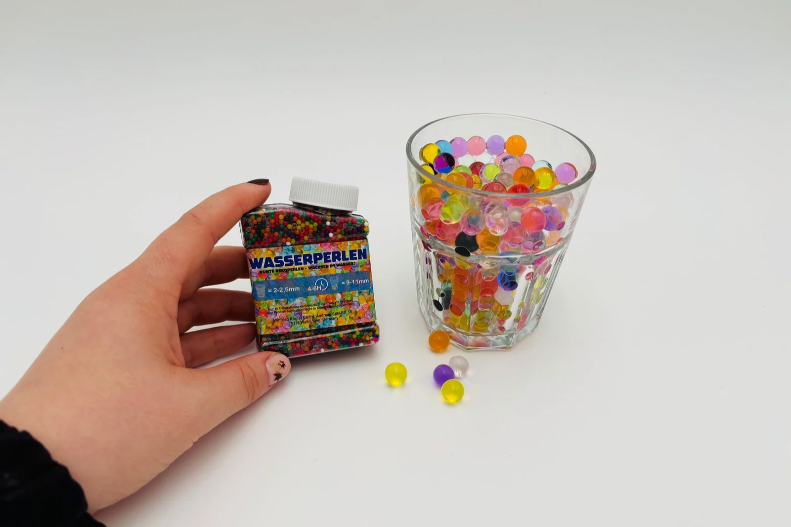 Ces petites billes de gel sèches absorbent l'eau en peu de temps et multiplient leur volume.