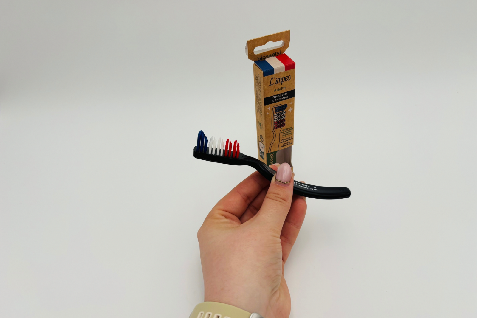 La brosse de nettoyage Impec est spécialement conçue pour l’entretien des gouttières dentaires, appareils orthodontiques amovibles, prothèses et orthèses buccales.