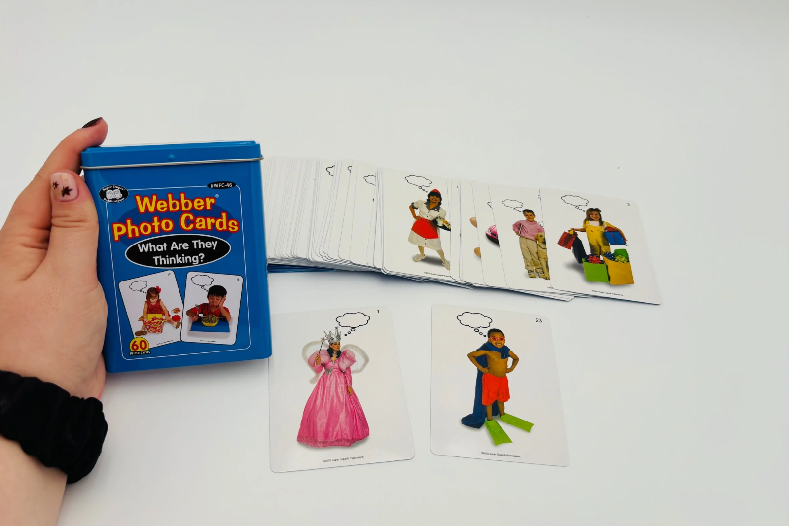60 cartes représentant des situations avec des personnes ou des animaux.
