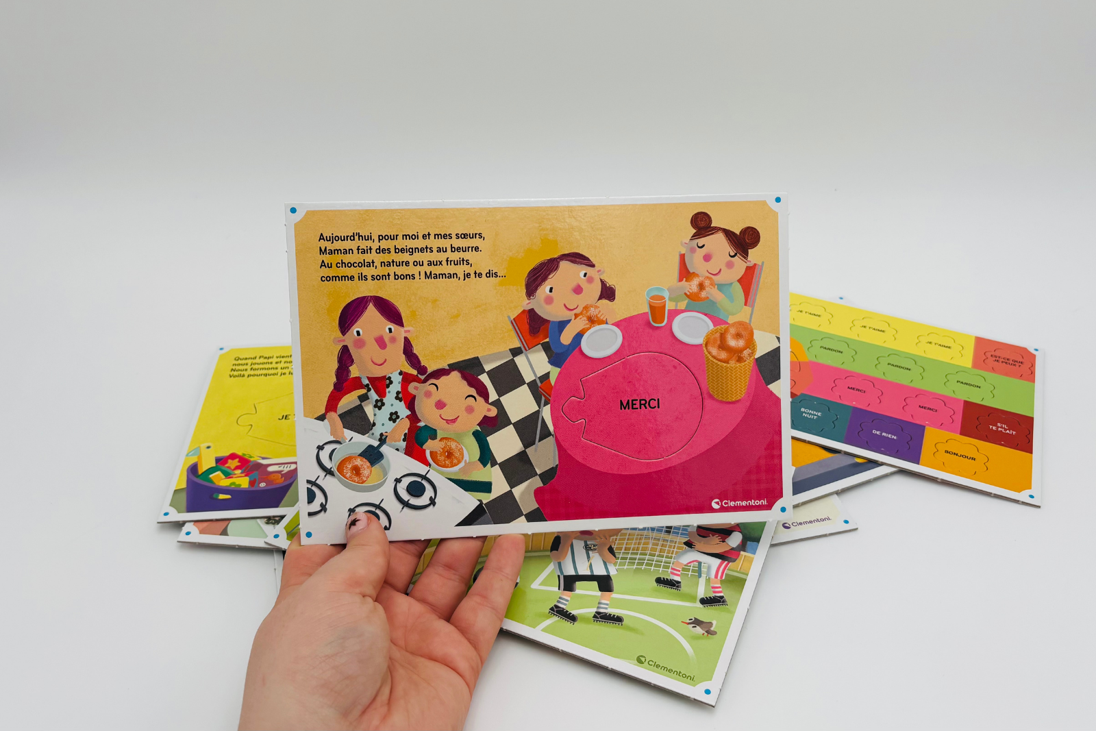 L'enfant place la pièce avec le mot magique dans la bonne scène ou la bonne comptine et fait une association logique entre les mots et le contexte approprié.
