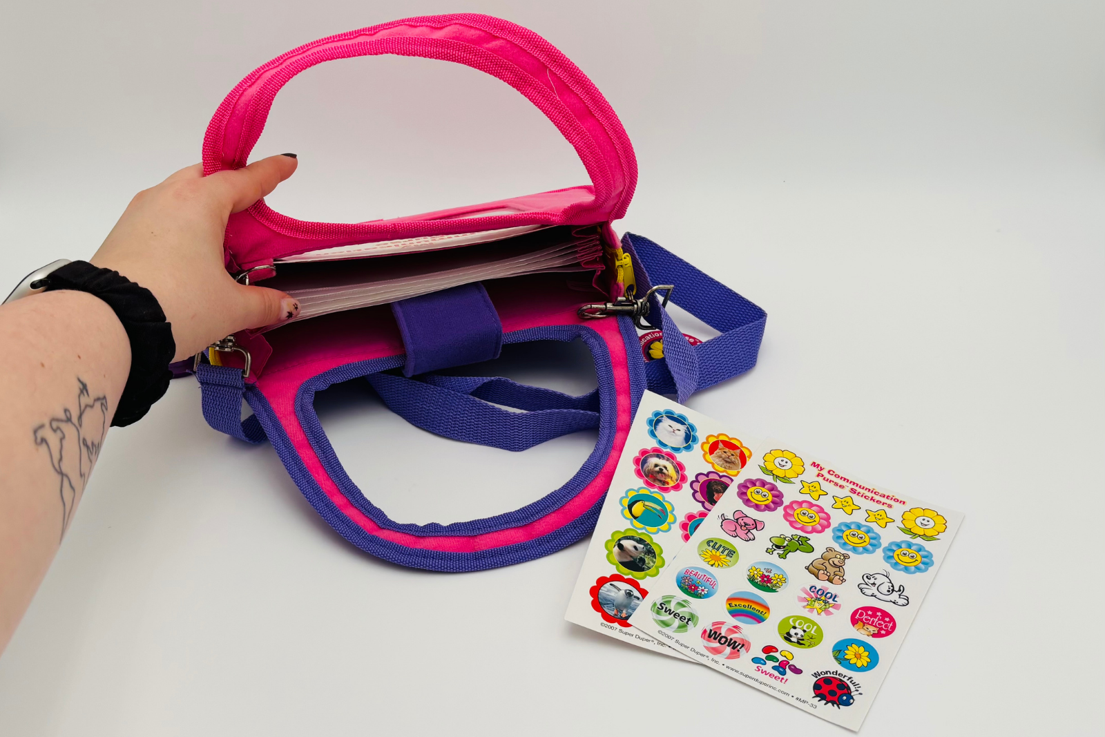 Sac composé de plusieurs pages velcro et de 30 autocollants colorés.